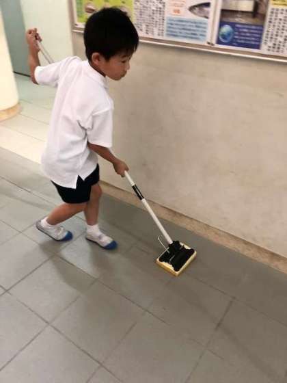本校では、木曜日と金曜日は、なかよし班のメンバーで清掃活動に取り組みます。ほうきの使い方のコツを教え合ったり、隅々まで汚れを取る方法を考え実践したりする姿が、あちらこちらでみられます。是非、ご家庭でも、お掃除のコツをお話いただければと思います。