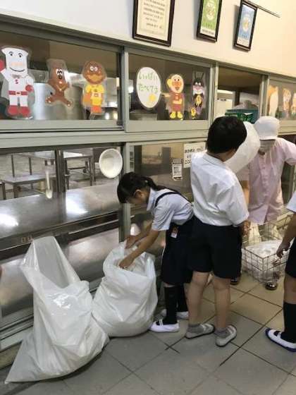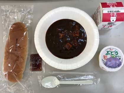 今日も引き続き調理を伴わない給食でした。ヒートレス野菜シチュー、ぶどうゼリー、コッペパン、いちこジャム、牛乳です。2日間、ヒートレスの給食が続き、初日の珍しさもなく、子ども達はいつもの給食が懐かしくなったようでした。多くの子ども達がすでに明日の給食に気持ちが切りかわり、「かやくご飯って炊いてくれてるの?」「棒チーズってどんなんやろう?」などと話をしていました。調理を伴わない給食は、それぞれが個包装されているので、ごみの分別が細かく決まっています。教室ではみんなで協力して分別し、給食室に返しにきた給食当番の子ども達がしっかり確認しながら返却しています。