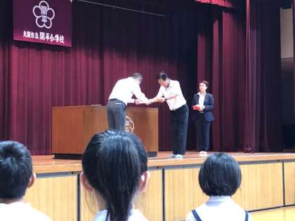 今日、本校の子どもたちの学習に役立つようにと、教育公務員弘済会から「国語辞典」25冊の寄贈をいただきました。2学期からの学習で活躍してくれそうです。