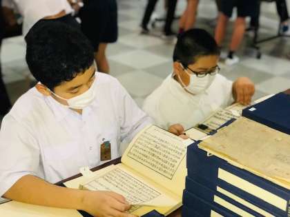 今日は、6年生が地下の書庫にある愛日文庫の曝書に取り組みました。貴重な書物に触れることのできる機会。子どもたちも興味津々。開平小学校に引き継がれる想いを感じることができたようです。