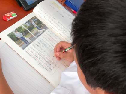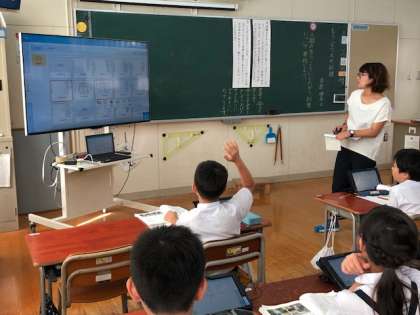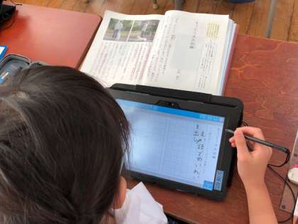 昨日の盲導犬体験を踏まえ、今日は、国語の教科書にある「もうどう犬の訓練」から、人にしたがう訓練とはどのようなものか要約をまとめる学習に取り組みました。教科書から大切な言葉を見つけ、まとめ、タブレットで考えを交流しました。