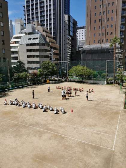 暑さ指数が高い日が続き、なかなか運動場で練習ができなかったのですがやっとできました。