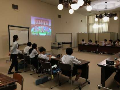 6年で音楽の公開授業を行いました。楽器の音色やリズムを意識して、雅楽「越天楽」を味わいました。