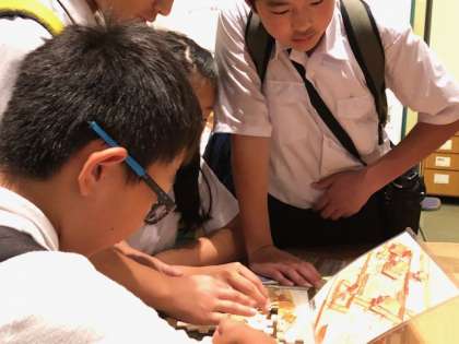 船場の歴史についての学習の後は、歴史博物館に展示されていたことをふりかえるパズルにチャレンジ!みんな、夢中で取り組んでいます!
