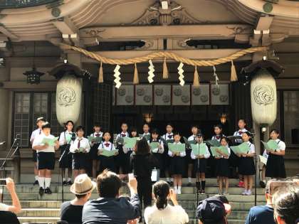 今年で3回目の参加。坐摩神社にて、4年生から6年生の有志で開平の歌声を響かせました!