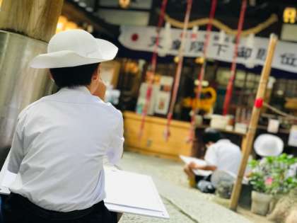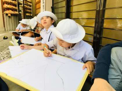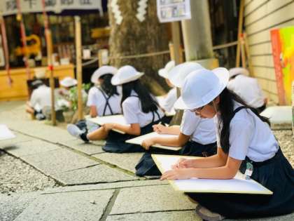 図工の学習で、少彦名神社に、写生会にいきました。奥行きを意識して配置を考えたり、細かな模様まで画用紙に描いたりと、熱中する姿がみられました。