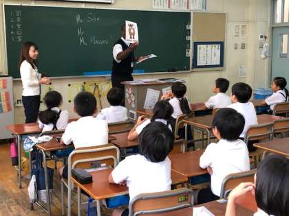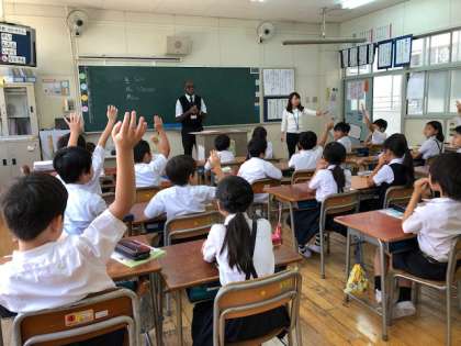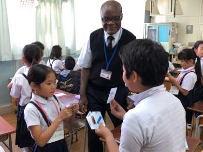 中央区の英語支援事業の一環として、ゲストティーチャーの方が来校されました。カードゲームなどを通して、より英語に親しむことができました。