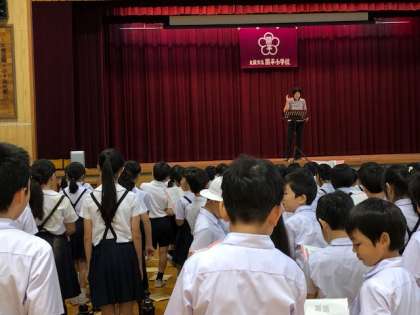10月の音楽朝会では、「故郷の空」にチャレンジ。みんなでの初めての譜読みですが、さっと声を響かせることができました。