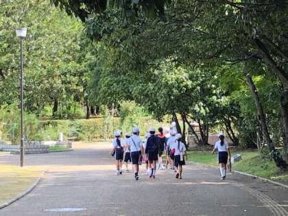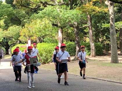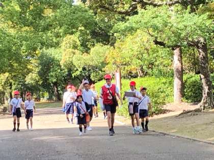 なかよし班で力を合わせて、オリエンテーリングにスタートです!
