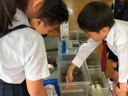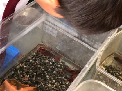 2年生活科の学習として、生き物を飼育しています。今日は、朝から、子どもたち大興奮!ザリガニがたまごを抱いていました。どうやって育てていけばいいのが、朝から考える姿がみられました。