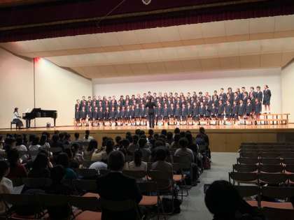 4年生から6年生が代表で参加しました。合唱「far away」「いつまでも伝えたい」を披露しました。他校の合奏合唱も聴けて、楽しい交流会でした。よく頑張りました。