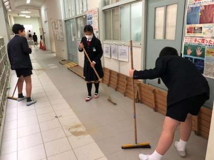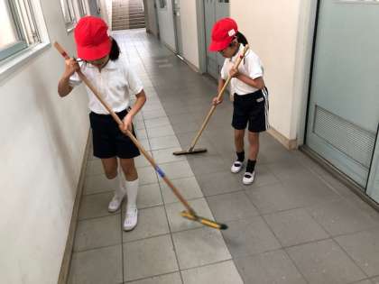 気持ちのよい学校生活をおくるためにも、きれいな校舎を保つことは大切なことです。すみずみまで、しっかり清掃することで、きれいな環境が整い、さらには落ち着いて学習にものぞめます。開平小学校の清掃活動は、月曜日〜水曜日が学級ごと、木曜日・金曜日はなかよし班ごとに行います。清掃のコツを見つけ合い、伝え合い、実行していってほしいと思います。