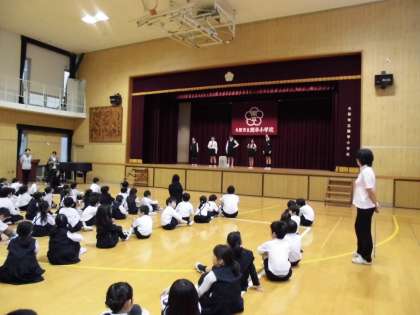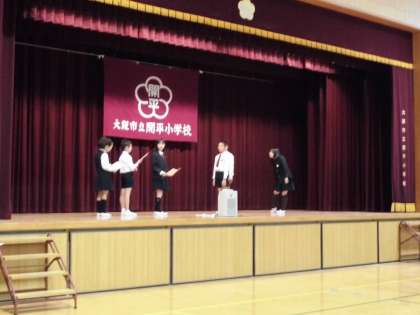 16日に鶴見緑地で行われた全校オリエンテーリングの表彰を、児童集会のときに行いました。どのなかよし班も協力して頑張っていたので、総得点は本当に接戦でした。今回は、僅差で『5班』が総合1位に輝きました。これからも、みんなで協力し、その名の通り仲よく楽しく活動に取り組んでいきたいと思います。