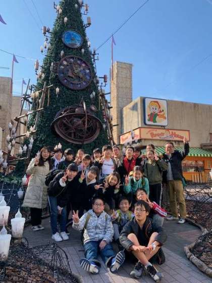 ひらパーは、ほぼ貸切状態。記念写真の後、班ごとに活動します。