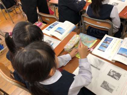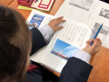 1年国語の学習では、いろいろなふねについてかかれた説明文を読み、わかりやすく説明する工夫をみつけます。見つけた工夫を使って、オリジナル「のりものカード」をみんなでつくっていきます。