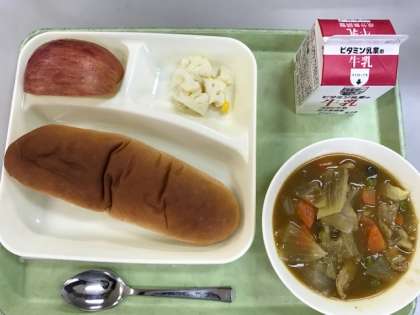 今日の給食は、豚肉と野菜のカレー煮、カリフラワーとコーンのサラダ、りんご、黒糖パン、牛乳です。給食週間中の担任外の教職員による給食訪問も今日で2日目です。3年1組と2組に訪問し、給食を一緒に食べました。「好きな給食は何?」「何の給食がおいしかった?」などの給食の話はもちろん、普段あまりすることのない子ども達にとって興味のある話まで、いろいろな会話で盛り上がっていました。
