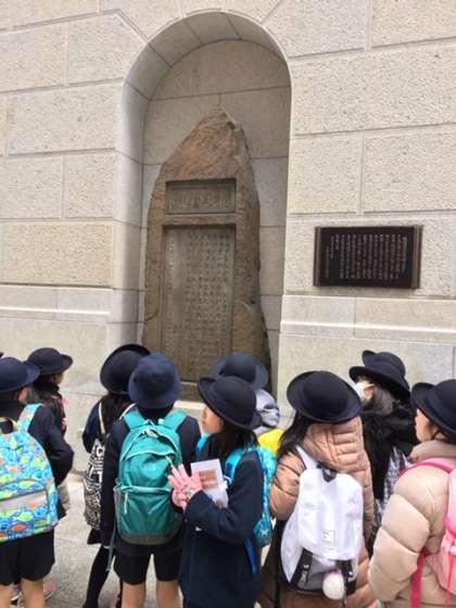 4年総合的な学習の時間「船場探検隊」の学習で、船場に引き継がれてきた想いにふれるとして、適塾・懐徳堂跡・愛珠幼稚園を訪問しました。船場で学んだ人々の想いを感じることができました。