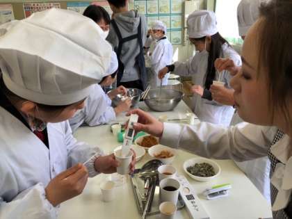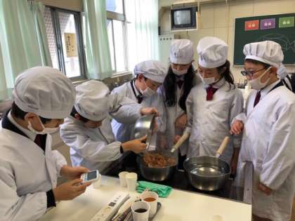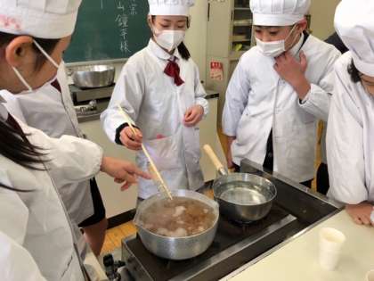 5年家庭科の学習で、ゲストティーチャーとして神宗のみなさんに来ていただき、「だしの学習」に取り組みました。甘味・塩味・酸味・苦味・うま味について考えた後、1番だしをとり、だしを堪能しました。最後には、そのだしをつかって作られたうどんをいただきました。「だしに甘味を感じました」「1番だしは、こんなにおいしいってことに初めて気がつきました」と体験を通して、たくさんの新しい発見をすることができたようです。