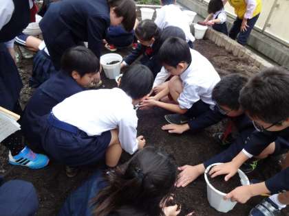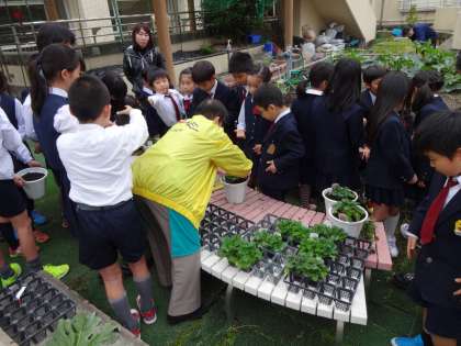後期のなかよし班活動が始まりました。5年生中心の新しい班体制でこれからのなかよし班活動を進めていきます。6日(木)にはルーフガーデンでプリムラの花の苗を植えました。開援隊園芸班の方にも来校していただき、土の量や植え方を教えてもらい、植木鉢に植えていきました。この花は、3月の色々な行事でも使う予定にしています。しっかりお世話をして、きれいな花を咲かせてほしいと思います。