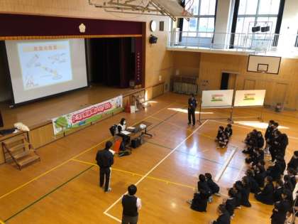 理科「空気と水」の学習を踏まえた体験学習に取り組みました。とじこめた空気の性質を活かした実験や自分たちがエネルギーになってみる活動にチャレンジ。エネルギーについて、生活とつなげて考えることができました。