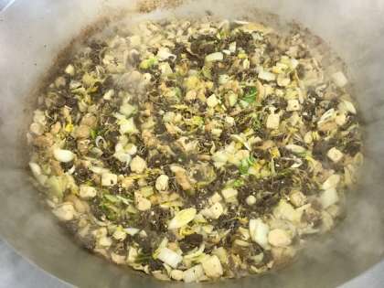 今日の給食は、すき焼き煮、もやしときゅうりのしょうがづけ、ツナっ葉いため、ご飯、牛乳です。すき焼き煮は、だし汁を使わず、はくさいなどの野菜から出る水分で煮含めます。ツナっ葉いためは、ツナとだいこん葉で作るご飯の供です。この頃、1年生から「今日の給食、全部食べたよ。」という言葉をよく聞くようになりました。入学当初は好き嫌いをしていても、少しずつ食べられるものが増えてきています。2年生に向けて確実に成長しているなぁと感じました。