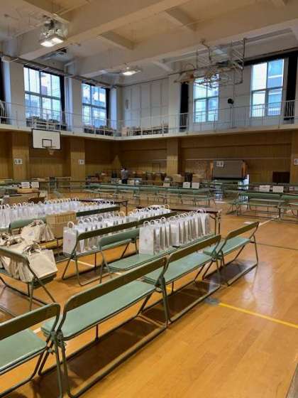 本日12日(日)から14日(火)で、教科書等の配付を行います。準備を整えました。各学年でかなりの量になっています。バッグ等のご準備をお願いします。