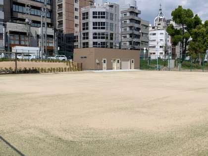 本年度から使用予定の「第2運動場」が完成し、先日教育委員会から引き渡しを受けました。綺麗に仕上がっています。南天満公園テニスコートに隣接し、トイレに体育倉庫、保健室もあります。