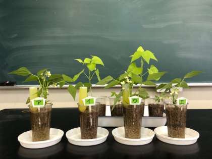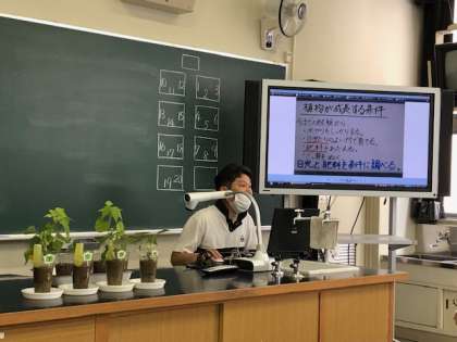 5年生理科の学習では、種子が発芽・成長するのに必要な条件は、何か考えました。家庭学習中に取り組んだことを、実際のインゲンマメの成長を見ながら、ふりかえりました。