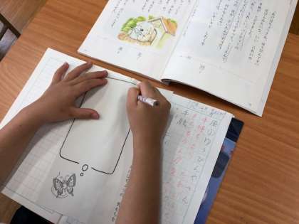 2年生国語の学習では、物語文「風のゆうびんやさん」にでてくる登場人物の気持ちを考えました。どこの部分からそのように考えたのか、ノートやワークシートにまとめ、交流することができました。