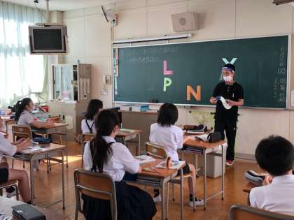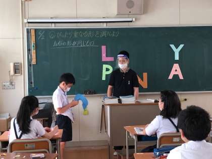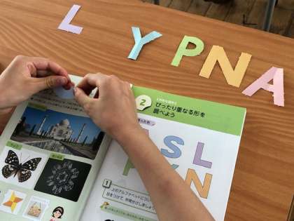 6年算数「対称な図形」の学習では、さまざまなアルファベットの形を使って、ぴったり重なる形について考えました。図形を実際に動かし、理解を深めることができました。