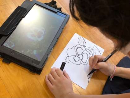 5年生図工では、花の形をよくみて描くという活動に取り組んでいます。細かなところまで、しっかりと形を捉え描く姿がみられました。
