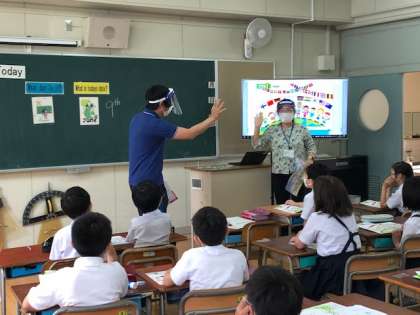 本年度、開平小学校には2名のC-NETの先生がきてくださっています。今日は、3年生が「さまざまな国のあいさつ」を一緒に学習しました。言葉だけでなく、ジェスチャーや発音にも気をつけて学習することができました。