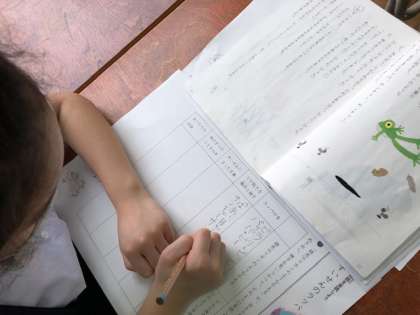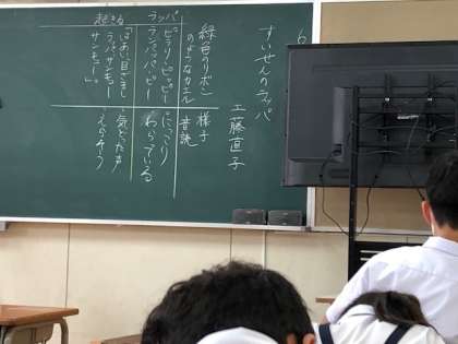 3年国語では、物語文「すいせんのラッパ」の文から様子を思い浮かべ、音読の工夫を考えました。「気どった声って、どんな声なんだろう?」と、使われている言葉を抜き出すだけでなく、みんなで様子を具体的に考えていくことができました。「えらそうな声かなぁ」「えらそうな声ってどんな風に出したらいいんだろう」など、自分たちのことばでイメージをふくらませていくことができました。
