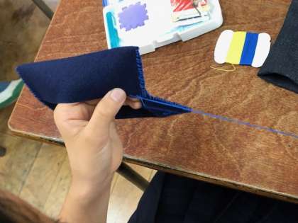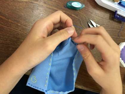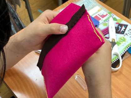 5年家庭科では、これまでに学習した、さまざまな縫い方を使って、小物づくりにチャレンジです。ティッシュケースや筆箱、さらには、持ち手つきのケースなど、さまざまな小物が出来上がってきています。