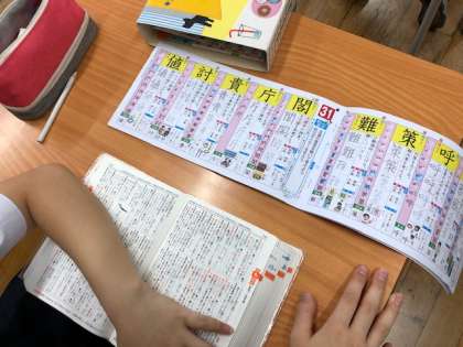 6年になると、さまざまな場面で、子どもたち自ら学びを深める姿がみられます。新しい漢字を習ったときには、国語辞典で熟語を調べるだけではなく意味を合わせて覚えたり、新しいお話にであったときには、自らお話にキャッチコピーをつけ読みを深めたりしています。