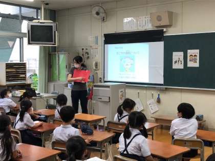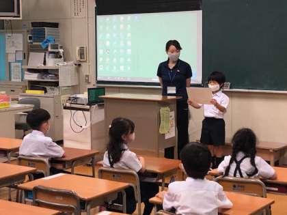朝の会では、子どもたちが司会進行し、今日の時間割を確認したり、日直によるスピーチが行われたり、先生からのお知らせをしたりします。1年生も、自分たちで進行する姿がみられてきています。朝のリズムをしっかり整え、気持ちのよい1日のスタートをきってほしいと思います。
