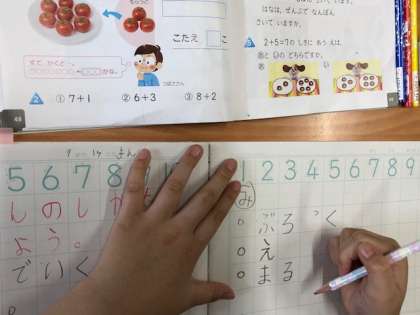 今日の1年算数は、全部でいくつになるか、計算の仕方を考えました。これまでの学習から、どのように考えるとよいのか「見通し」を立て、一人一人しっかり考えていくことができました。