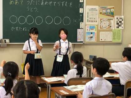 1年音楽では、拍にのって音楽を感じる活動をたくさん行います。今日は、「じゃんけんぽん」という歌に合わせて、拍にのってリズムを打ちました。カスタネットの音色にもしっかり耳を傾け、うたにあわせて音楽を楽しみました。