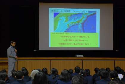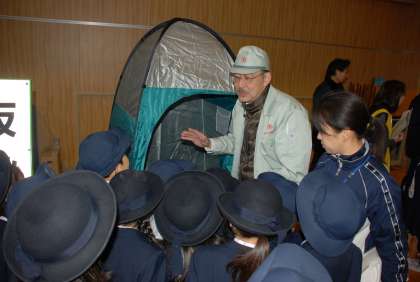 12月6日に土曜授業を行いました。今回は、地域の防災・避難所開設訓練と合同で行いました。地震発生による通常の避難訓練の後、子どもたちは区役所の方に、地震の発生する仕組みや災害への備え、命を守るにはどうしたらよいのかなどを、スライドを使って学習しました。他にも、学校に備蓄してあるいろいろな品物の展示を見学したり、炊き出し用のご飯を試食させてもらったりしながら、防災について考えることができました。