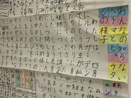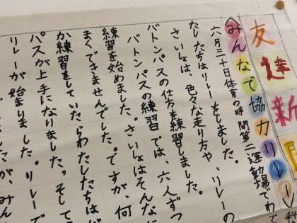 4年国語の学習で取り組んでいた、知らせたいことを伝える新聞づくり。グループの大きな壁新聞が完成しました。お互いの伝えるための工夫をしっかり交流してほしいと思います。