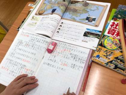 社会の学習では、さまざまな場面において資料を活用します。6年生では、資料集や教科書等の資料からどのような時代だったのか考えていきます。