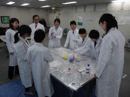 「共栄社化学」では、フルーツを使った乾電池と、スライムづくりをしました。電極(金属の板)を増やすことで聞こえなかったオルゴールの音色が大きくなることに驚いていました。