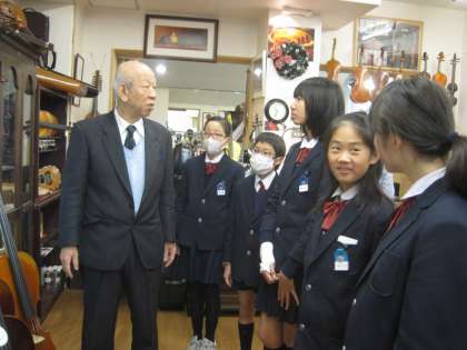 「国際楽器社」では、色々な楽器紹介、修理の工程、音楽教室やホールの見学をさせてもらいました。初めて見る楽器もあり、その音色に感心していました。