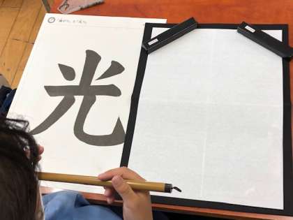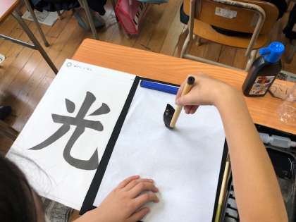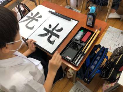 今日の3年書写は、「曲がり」と「反り」に気をつけて「光」を書きました。前回の「はらい」の学習をいかして、筆の運び方をしっかりと考え取り組んでいくことができました。