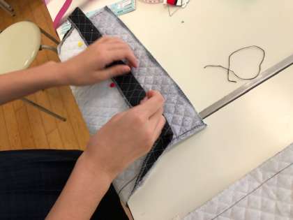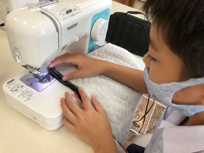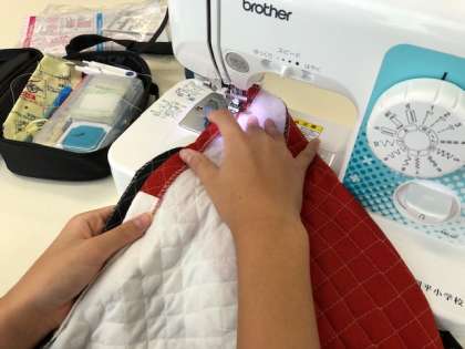 6年家庭科では、これまでに学習したミシンの使い方を活かしてナップザックづくりをしています。荷物を入れても使えるように、細かなところまで丁寧に仕上げていくことが大切です。ほつれてこないように、どこをどの手順で、どのように縫っていくのかきちんと確認しながら進めています。