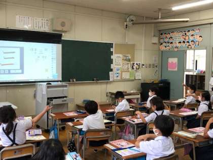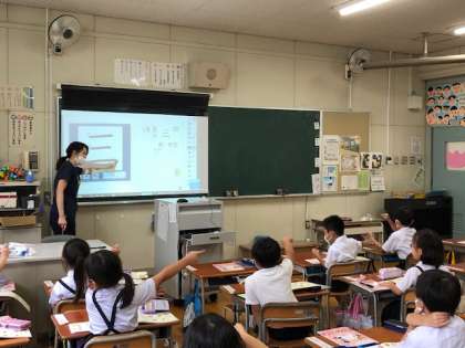 1年国語の学習では、漢字の学習がスタートしました。筆順や形に気をつけて、丁寧に練習しています。