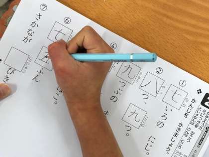 今日は、1年生が、はじめての漢字のふりかえりテストにチャレンジ。筆順や形に気をつけて、丁寧に書くことができました。