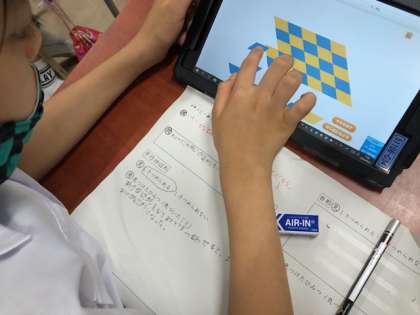 今日の4年算数では、タブレット端末を活用しながら考えを深めていました。考えを思考錯誤するツールとして活用することで、たくさんのひみつを見つけることができました。友だちの意見に対する意思表示をハンドサインでしっかり伝えることが出来ました。