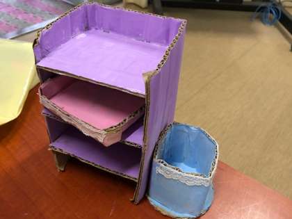 実際に使う場面を想像しながら、工夫をしていくことができました。「机の上を整理するためにおしゃれな収納ボックスをつくってみよう」「携帯やお金を一緒に片付けられるようなボックスをつくろう」「大好きな本を片付ける可愛いボックスを作ろう。メモをすぐできるように鉛筆たてもつけてみよう」と、どんどん工夫していました。