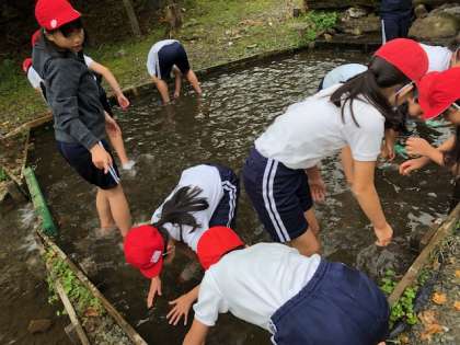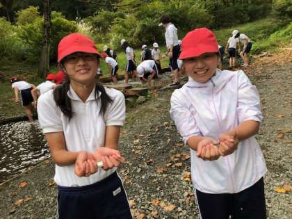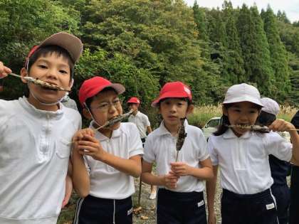 みんな、魚を捕まえガブリ!焼きたての魚は美味しい!